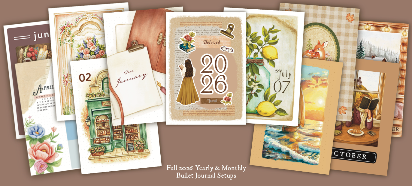 2026 Yearly 'Books Theme' • Printable / Downloadable Bullet Journal Setup