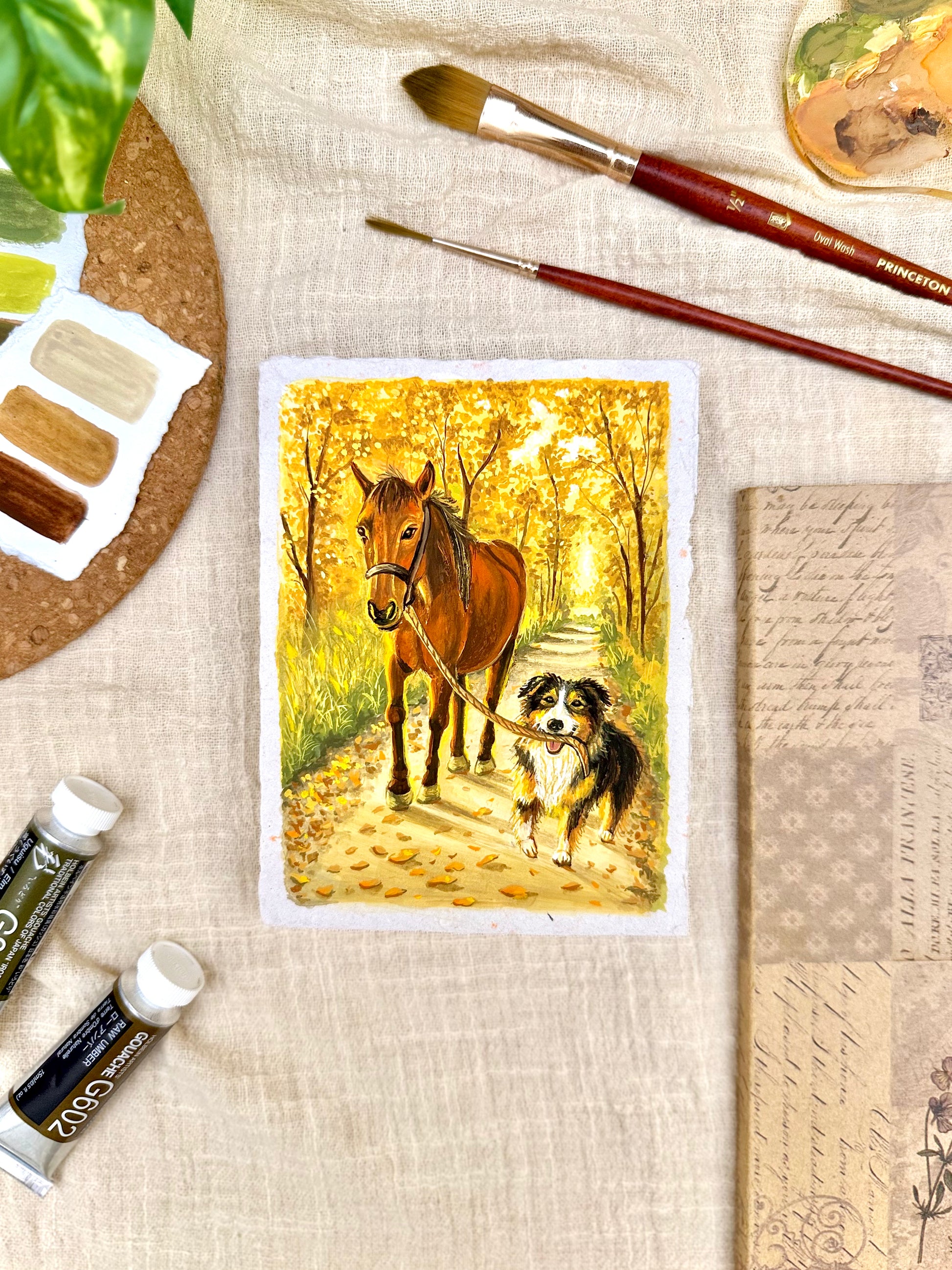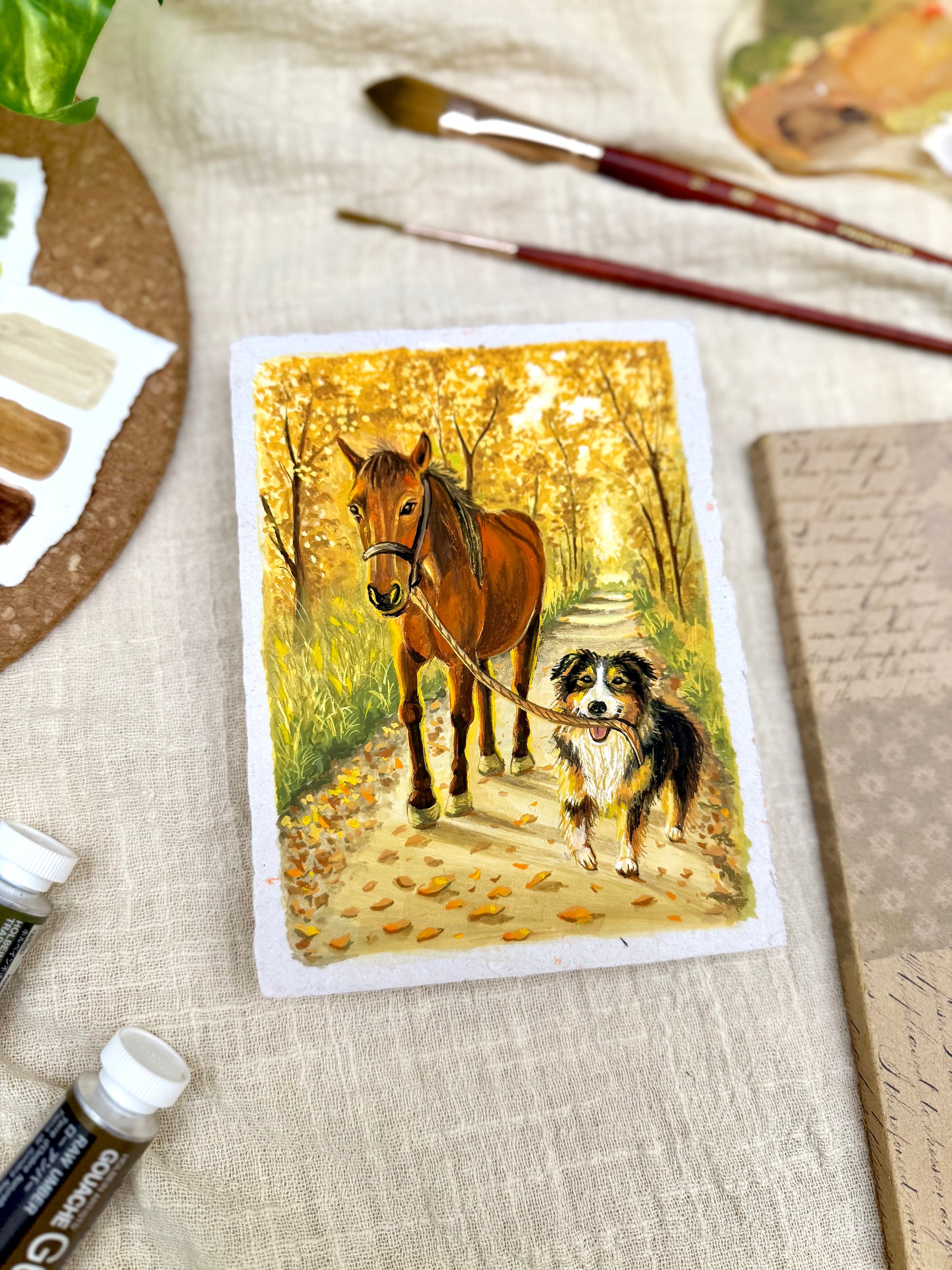 This original gouache painting will bring a touch of warmth and fun to any room. Painted with artist-grade gouache on handmade paper, this delightful artwork is a unique addition to your home décor or a special gift to a loved one.